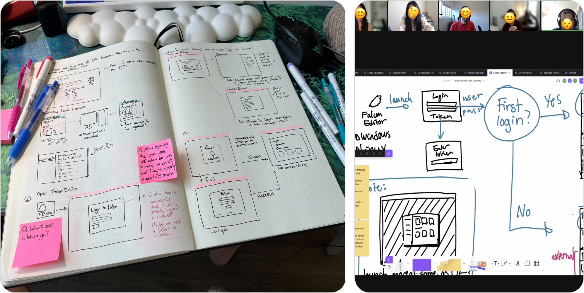 Designing the user flow is the most significant and time-consuming process during development. Based on the user script provided by the product manager and the personas I created, I mapped a user journey that outlines each step users encounter in Falcon. This process involved numerous iterations, including several scrum meetings and extensive feedback sessions on FigJam.