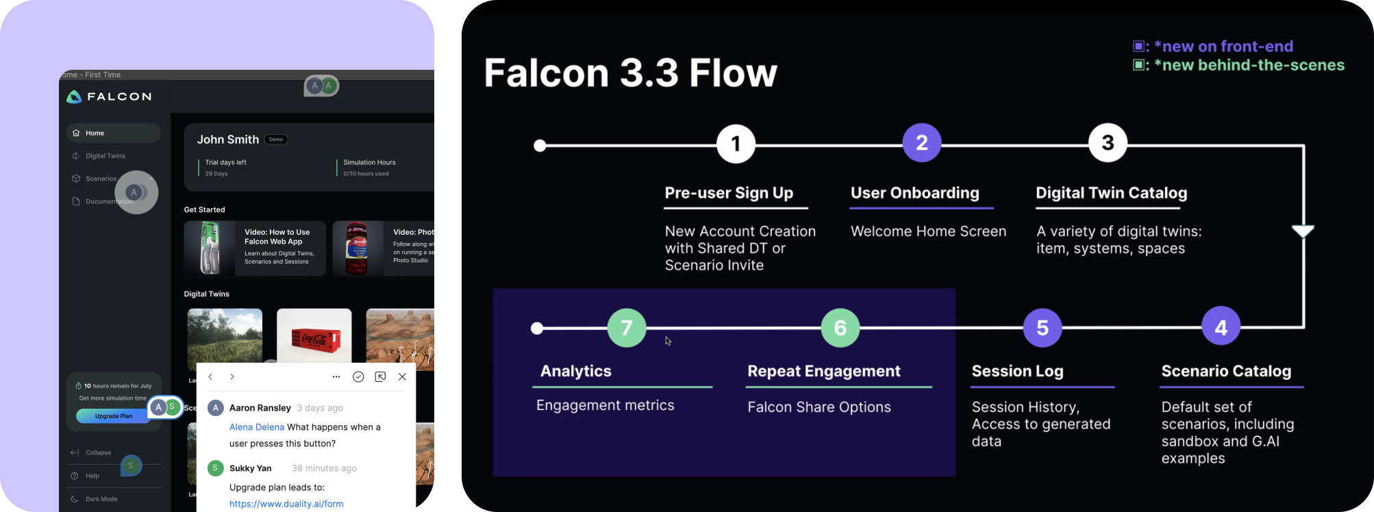 I collaborated with developers and product managers to ensure the launch within a fast-paced timeline of one month. My responsibilities for Falcon Cloud 3.3 UX improvements enhanced the onboarding process, Scenario & Digital Catalog, and tier plans. These improvements streamlined the user experience and increased user conversion rates, achieving a 25% growth in users by Q2 2024.